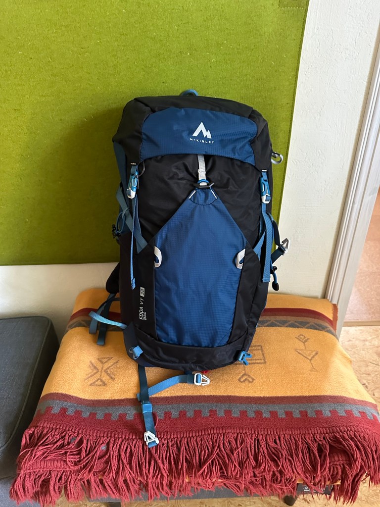 Der Rucksack ist final gepackt, ein 28 Liter- Rucksack, insgesamt 6,7 kg .