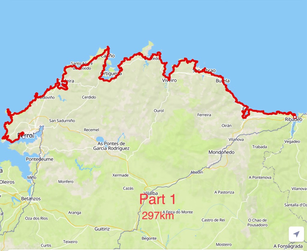 Wir haben etwa 297 km vor uns, je nach Variante, brauchen wir 10-12 Tage bis Ferrol.