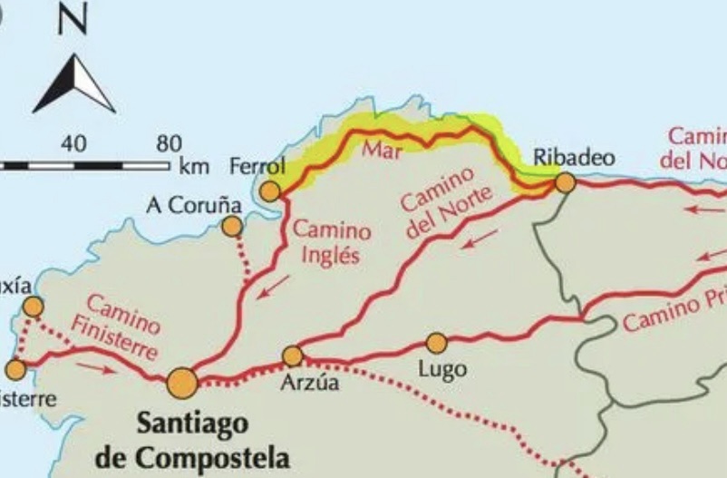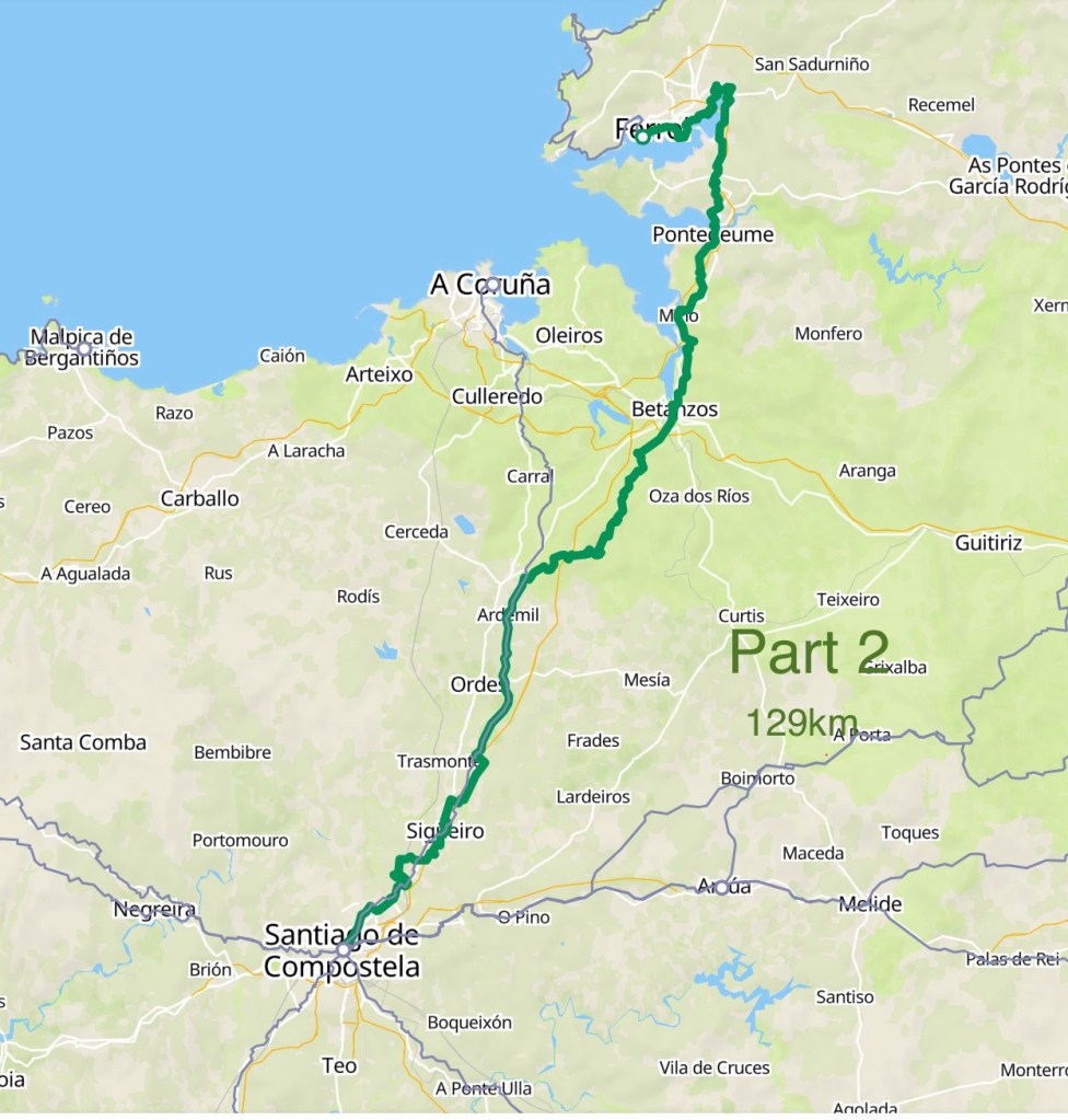 Ferrol ist dann der Startpunkt für den 2.Teil unseres Weges nach Santiago. Von hier laufen wir wieder auf einem PilgerWeg, dem Camino Ingles, dem englischen Weg. Ein ruhiger, nicht überlaufener Weg.