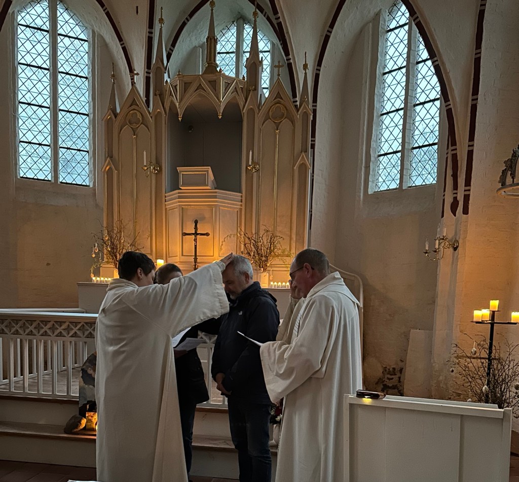 Heute also wurde ich mitten im Gottesdienst,( ich hätte es wissen müssen 😉😊) ,vor den Altar gebeten und Pastorin Schulz, Dietmar Kunkel (KGR) und Sandra legten mir ihre Hand auf und sprachen mir den Reisesegen zu: