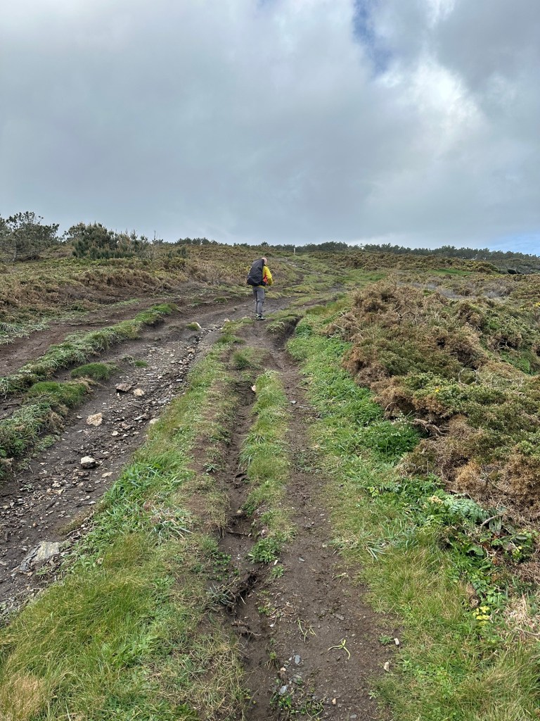 Manchmal fragt ich mich , wo die Planer solcher Trails die Wanderer/ Pilger hinschicken? Es ging mit mal über einen Kuhacker. Total aufgeweicht, und eine Kuh mit 2 Kälbern außerhalb der Koppel.