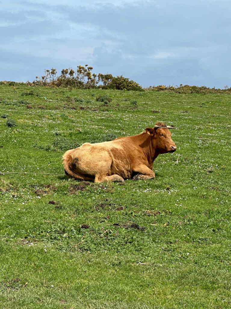 Hier war es entspannt, die Kuh war angepflockt. Wird sich auch gedacht haben, lass die Deutschen mal durch den Modder waten.😂😂