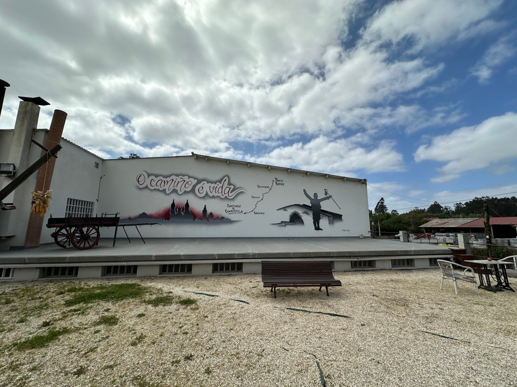 Unser heutiges Ziel, Miño, liegt auf MeeresspiegelNivea. Zwischenzeitlich kommt in Ponte Baixoi noch ein Rastplatz mit Verkauf und Pilgerversorgung, ganz liebevoll gemacht. Im Sommer von den Pilgern auf dem Ingles bestimmt gut besucht.