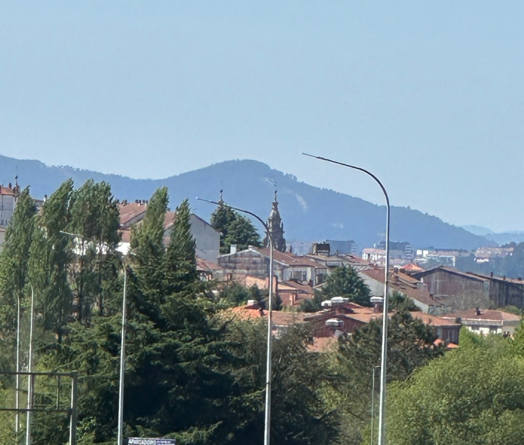 Und dann, 2 km vor dem Ziel, die Türme der Kathedrale kommen in Sicht. Ich hab bestimmt schon 5 km vorher Ausschau gehalten, sie haben sich gut versteckt.