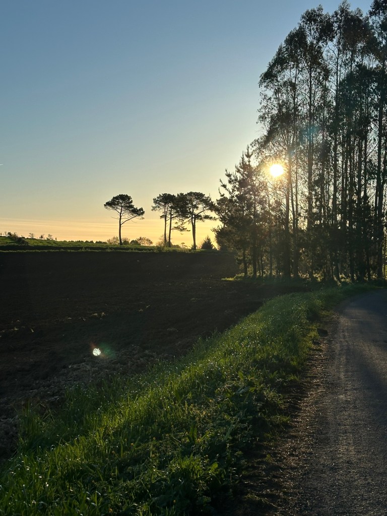 Die nächste Stadt ist erst Cee, wir laufen übers Land, die Bauern sind schon fleißig am Gülle versprühen.