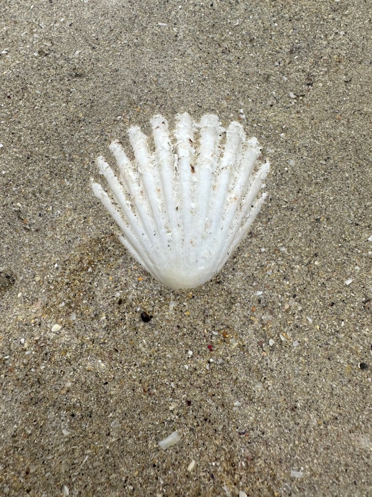 Ich wollte ja morgen noch Jacobsmuscheln sammeln, aber es sind keine zu finden, eine einzige, und die war gebrochen. 🤔🤔🤔