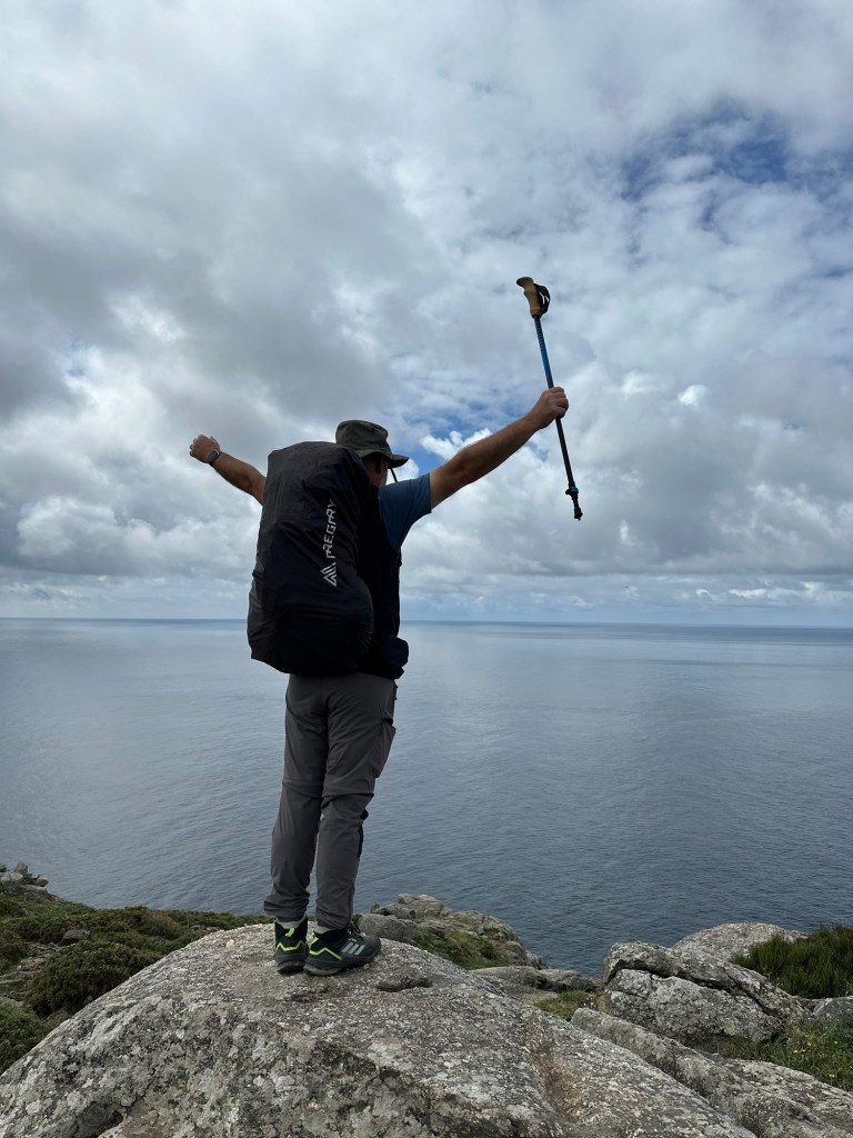 Nach 434 km von Ribadeo über Ferrol und Santiago, sind wir gesund und munter am „Ende der alten Welt“, dem Kap Finistere.