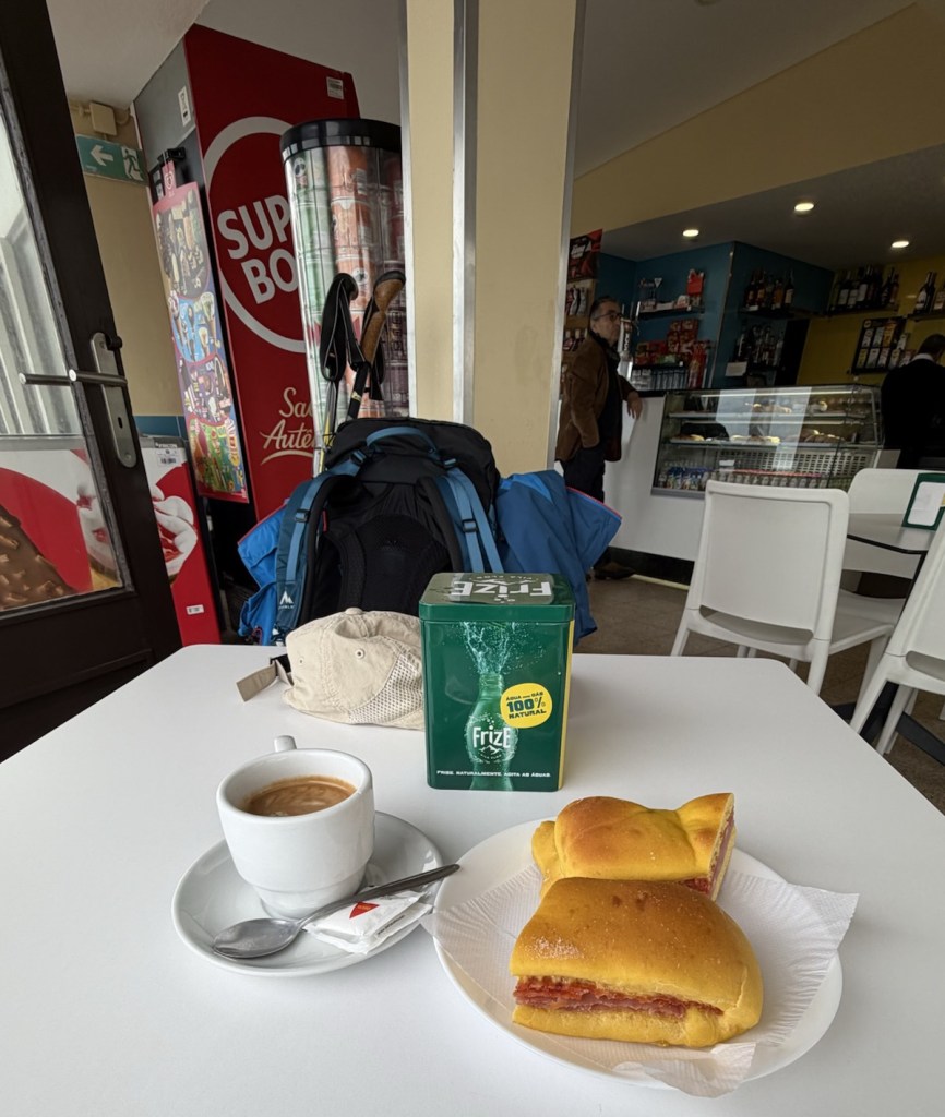 Nach den ersten 5 km dann endlich ein Café , das offen ist.