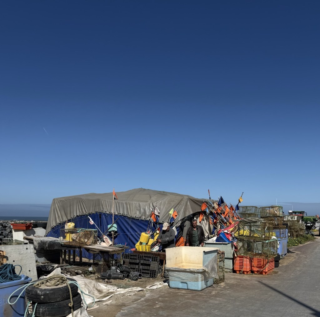 In Lavra stehen die Fischer an den Netzkörben, holen Krabben raus, die Frauen puhlen Muscheln.