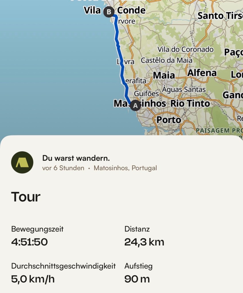 Morgen geht es nach Esposende, 22 km entfernt laut Streckenplan.