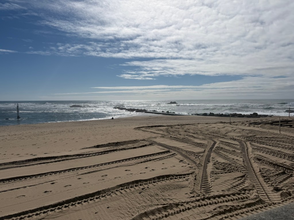 Die Unwetter im Februar und März haben die Küste ganz schön heimgesucht, aber überall sieht man Bautrupps mit Radladern, die Strände aufräumen und die schadhaften Holzstege reparieren.