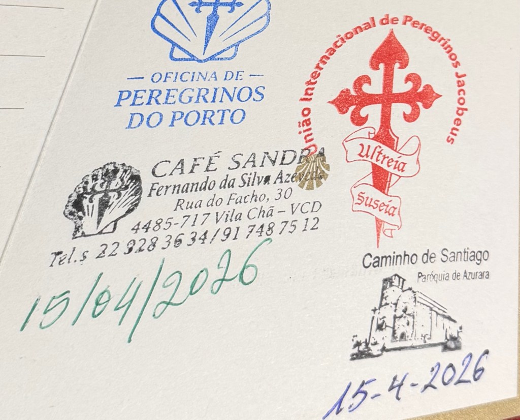 Ein alter Herr stempelt den Pilgerpass und wünscht Bom Caminho.