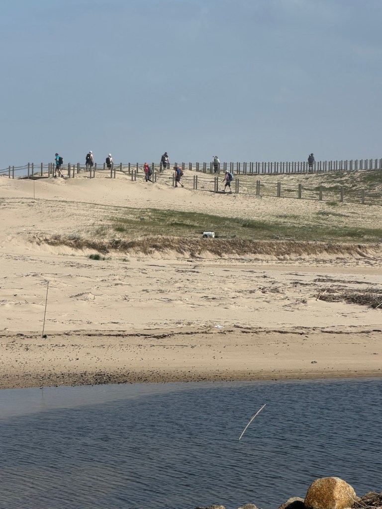 Hier hat der Wind ordentlich Strandsand rüber geweht. In kurzer Hose und Wanderschuhen hol ich mir immer Sand in die Hacken.