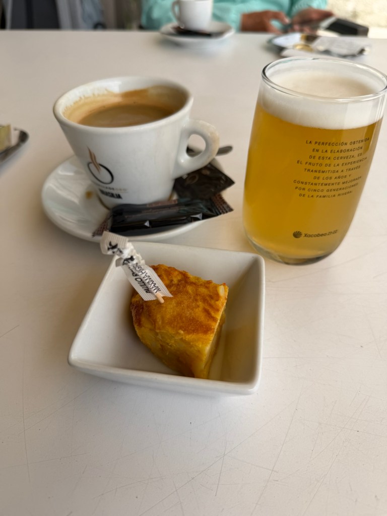 Café, die geliebte Clara con lemon und ein kleines Stück Tortilla. 🫣😋