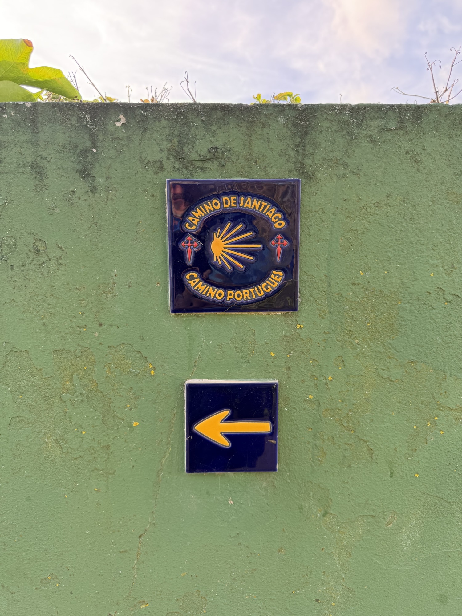 Nur ein mal habe ich heute einen emaillierten Camino-Pfeil gesehen, ansonsten nur irgendwelche aufgemalten Pfeile. Der Weg war dadurch aber immer sehr gut zu finden.