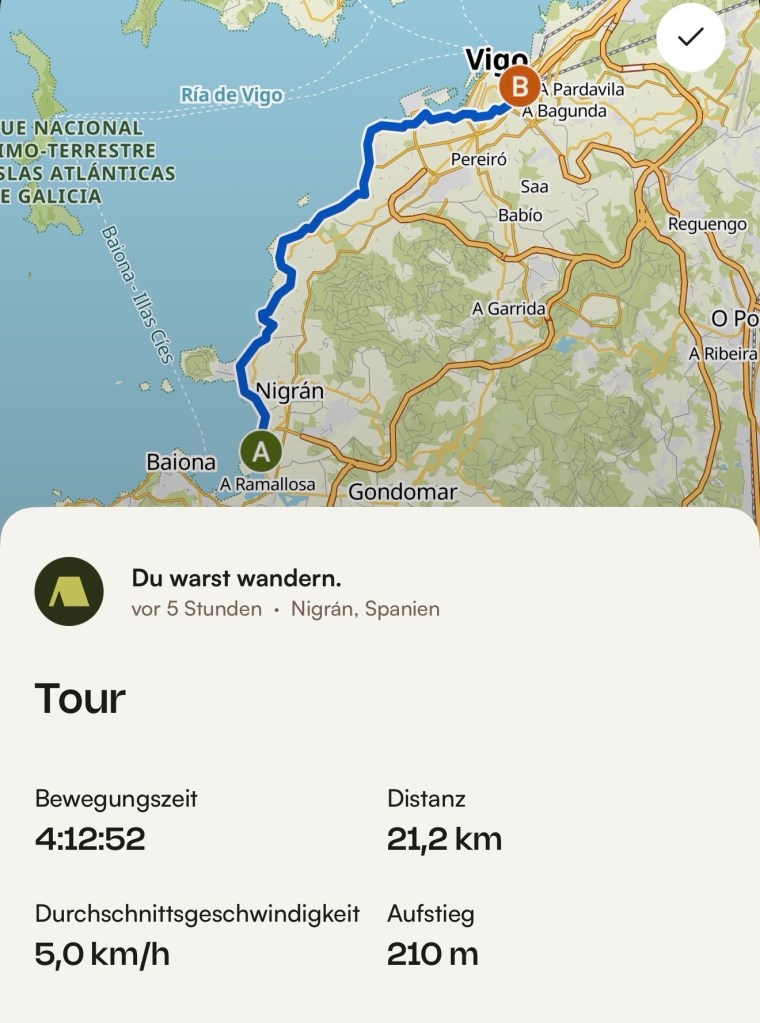 Der Weg hat sich gelohnt, sehenswert, angenehm zu laufen, bis Vigo.😉