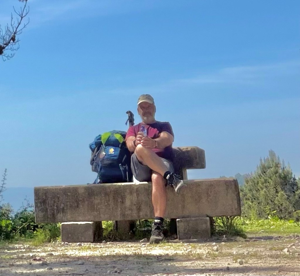 Ich bin wieder auf dem Camino und sitze schon ein paar Minuten auf einem kleinen Rastplatz, esse und trinke was.
