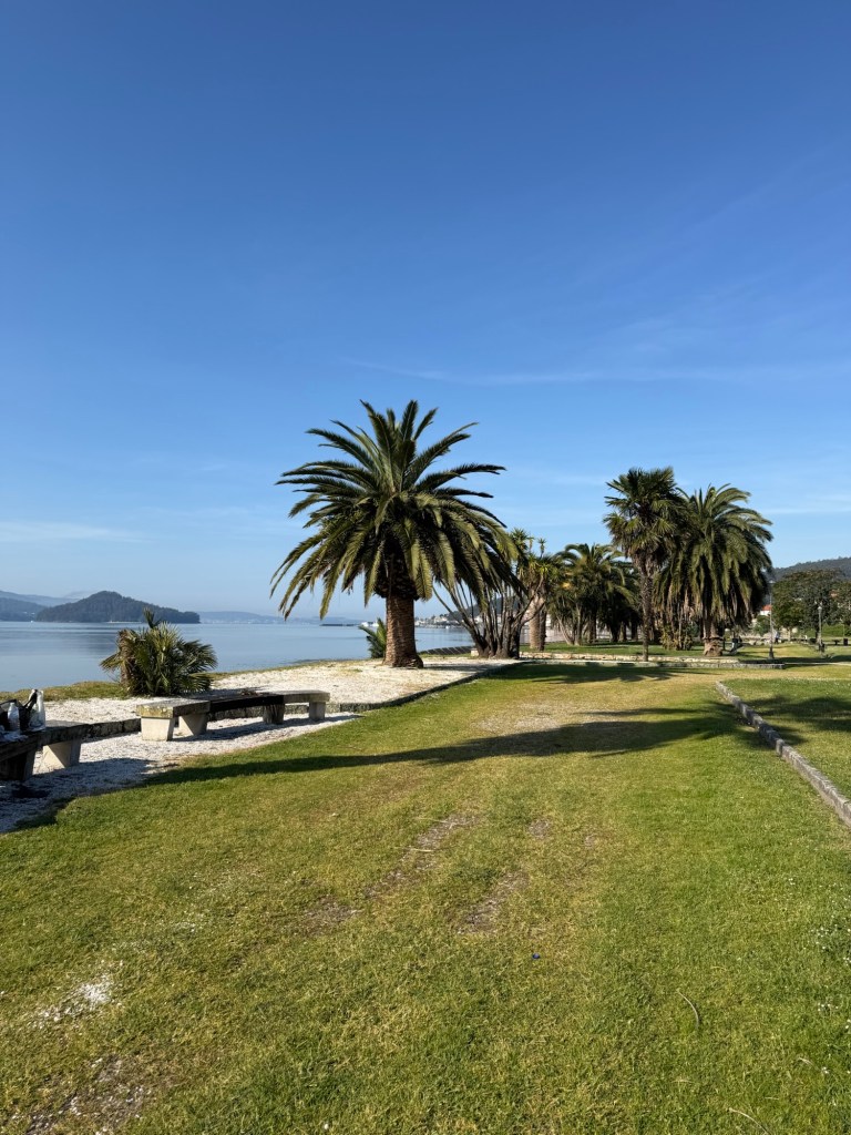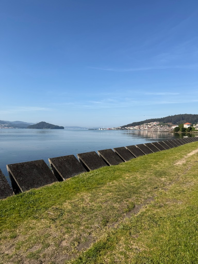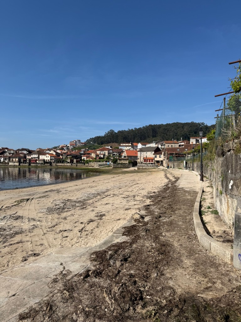 Von dort geht’s am Ufer der Ria de Pontevedra wunderschön auf einer Strandpromenade und einem Sportplatz in Richtung Combarro.