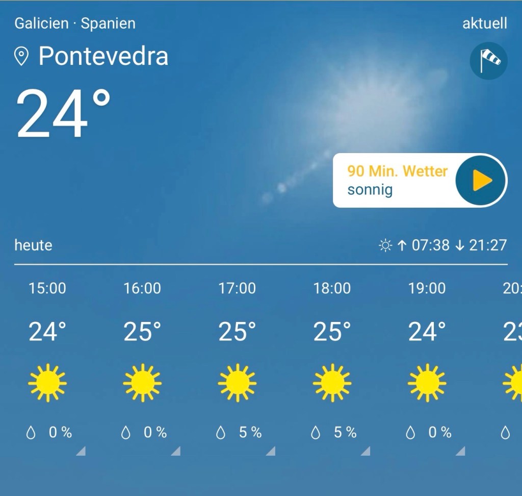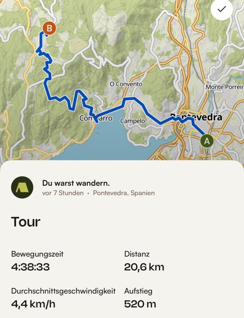 Morgen geht es über 22 km größtenteils bergab nach Vilanova de Arousa.