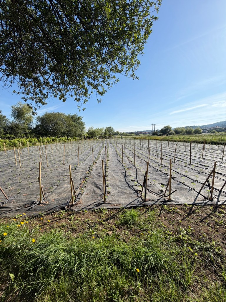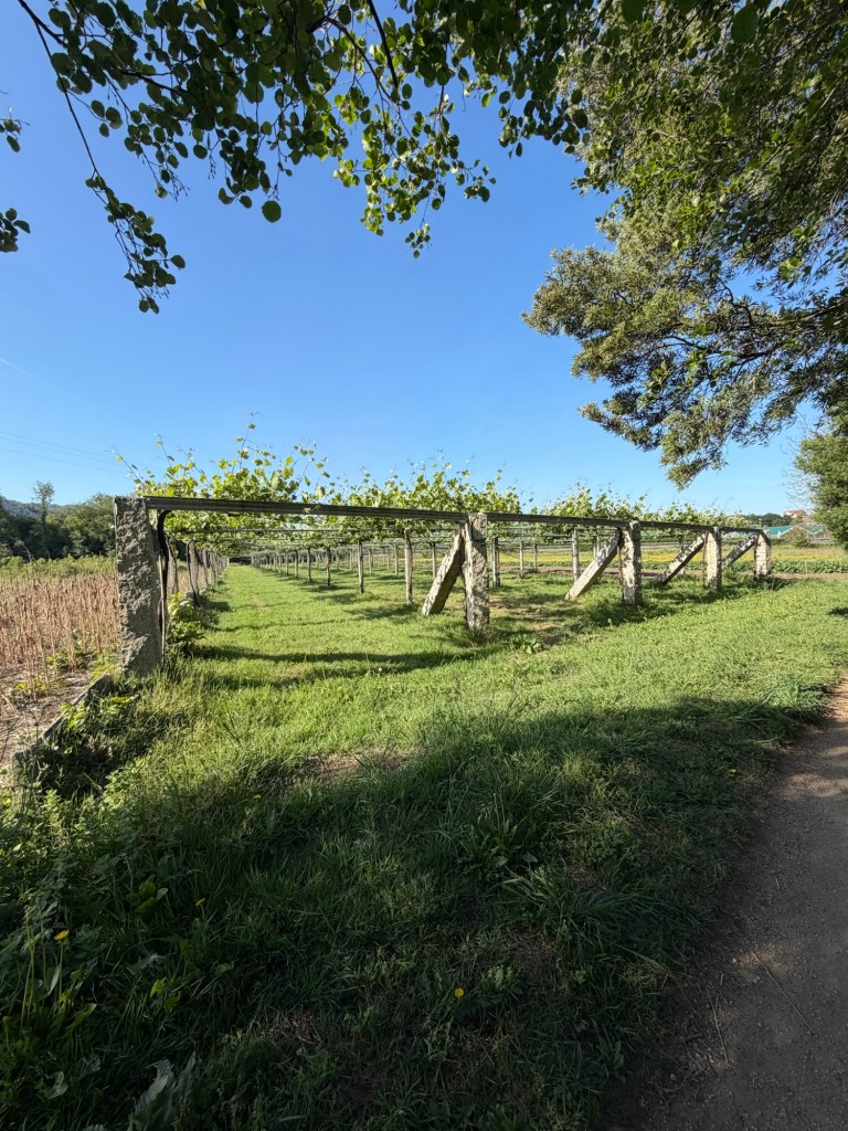 Vorbei an den Plantagen mit Wein, wo die Reben sind schon zu erkennen sind.