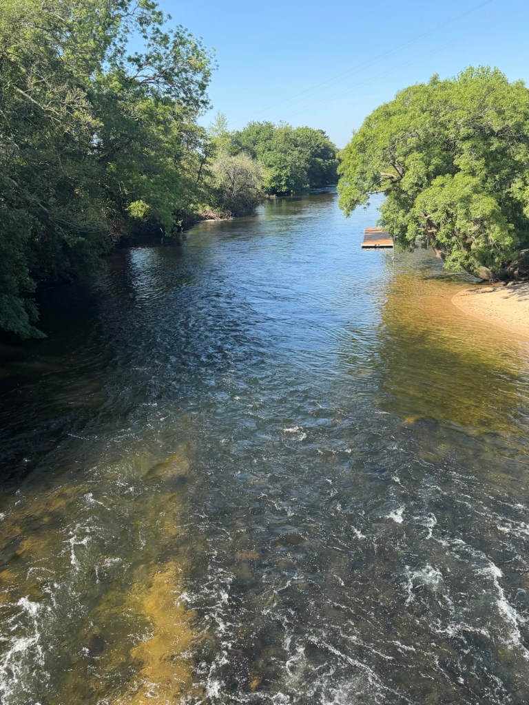 Nach weiteren Kilometern könnte ich gut eine Abkühlung gebrauchen, aber auf die Sandbank im Fluss hab ich mich doch nicht getraut.